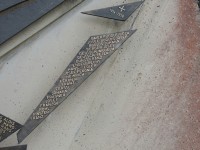 Das große Bronzerelief wiederholt noch einmal die Thematik der dahinterstehenden Form, verstärkt die Aussage und bezieht diese durch die stilisierte Darstelllung auf den Menschen, der zwar gefangen in der Dringlichkeit des Lebens, doch nach oben greift, sich nach Gott ausrichtet und sich so über alle anderen Kreaturen erhebt.”
