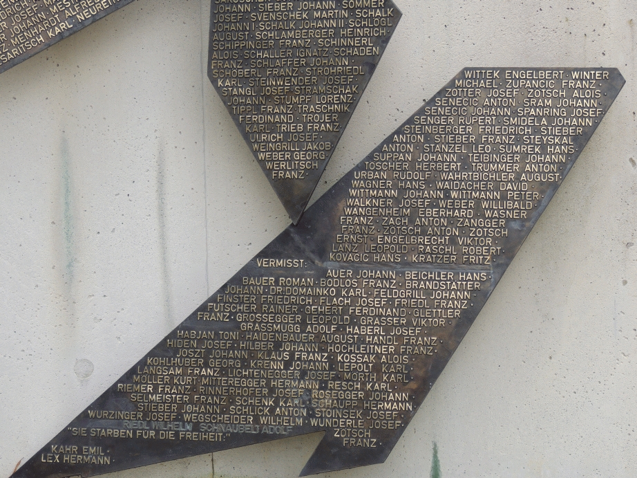 Es liegt von damals auch ein ausführlicherer Text von Clemens Höfler (P. Martin Höfler) vor: “Mit einem Festakt im Rahmen des ÖKB – Bezirkstreffens wurde am Gratkorner Friedhof durch Pater Paulus Kamper ein neues Mahnmal geweiht. Der bekannte Bildhauer Fred Höfler hat dieses Mahnmal, das an die Gefallenen der beiden Weltkriege erinnern soll, geschaffen.